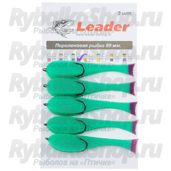 Поролоновые рыбки “Leader” оснащены качественными двойными крючками производства Кореи. Жала двойника плотно прижаты к телу рыбки, что, фактически, делает её незацепляйкой, но при этом очень хорошо засекает рыбу.