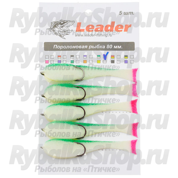 Поролоновая рыбка Leader 80 мм. кр. 1 бело-зеленая