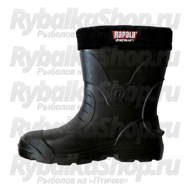 Сапоги RAPALA Sportsman`s Winter Boots Short -30°С - теплые невысокие сапоги для зимней рыбалки от финской компании Rapala (Рапала). Изготовлены из материала EVA (этиленвинилацетат).Обувь из такого материала в несколько раз легче аналогичной обуви из резины или ПВХ, обладает большей прочностью и элестичностью. Сапоги очень легкие, теплые и полностью водонепроницаемые.