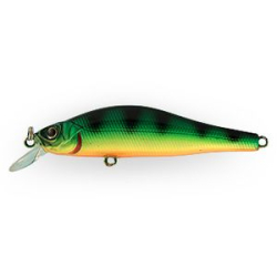 Lucky John Pro Series Mebaru – балансир, разработанный в Японии, для ловли хищной рыбы со льда и в отвес с дрейфующей лодки. Приманка изготовлена из свинцового сплава с корпусом и хвостом, сформированными из цельного морозостойкого и ударопрочного пластика ABS. Длинный хвост обеспечивает четкие развороты приманки в крайних точках траектории движения. В спинном плавнике, изготовленном из латуни, имеется три отверстия. В зависимости от точки крепления, игра приманки изменяется. На приманке установлены крючки Owner. Рекомендуется для ловли судака, щуки, форели и окуня.