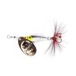 Lucky John Pro Series Mebaru – балансир, разработанный в Японии, для ловли хищной рыбы со льда и в отвес с дрейфующей лодки. Приманка изготовлена из свинцового сплава с корпусом и хвостом, сформированными из цельного морозостойкого и ударопрочного пластика ABS. Длинный хвост обеспечивает четкие развороты приманки в крайних точках траектории движения. В спинном плавнике, изготовленном из латуни, имеется три отверстия. В зависимости от точки крепления, игра приманки изменяется. На приманке установлены крючки Owner. Рекомендуется для ловли судака, щуки, форели и окуня.