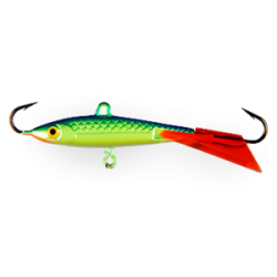 Балансир Strike Pro Super Ice 40 – это серия популярных балансиров отличного качества, предназначенная для подледной ловли. Отличительной чертой моделей данной серии является достаточно солидный вес при компактных размерах. Эта приманка обладает вытянутым металлическим телом веретенообразной формы с острым носом и подтянутыми боками. Крупный хвост приманки выполнен из флуоресцентного пластика красного или прозрачного цвета. Особая конструкция обеспечивает балансиру широкую, размеренную игру и позволяет облавливать большие пространства вокруг лунки. Кроме этого, данная модель сохраняет устойчивую игру как в стоячей воде, так и на течении.