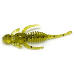 Strike Pro Flap Jack имеет форму тела характерную для всех раттлинов с очень реалистичными глазами. Тело воблера узкое, с ярко выраженной узкой площадкой в головной части приманки. Особенность этой приманки в том, что на ее спине находится сразу два крепления для лески. В зависимости от того, за какую петельку закрепляется леска, достигаются разные варианты игры приманки. Когда воблер соединен с леской за заднюю петельку приманка играет на сравнительно медленной скорости проводки и довольно агрессивно, занимая при этом почти вертикально положение в воде. Если закрепить приманку за переднюю петельку игра меняется.