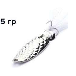 Широкий лепесток этой блесны имеет большое лобовое сопротивление, интенсивно шумит и привлекает рыбу со значительных расстояний. Сердечник – цилиндрический с ромбовидной накаткой, имитирующей чешую рыбы.