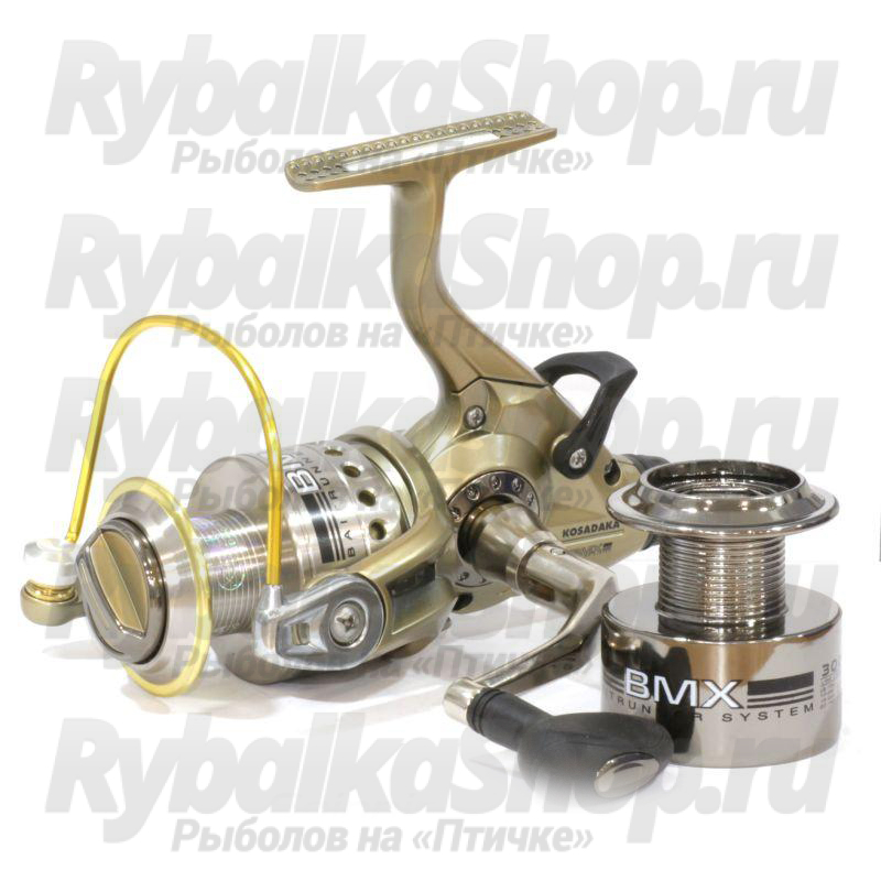 Шпуля катушки Kosadaka BMX - алюминиевая, покрыта нитридом титана. Форма лесоприемника шпули обеспечивает качественную намотку и плавный сброс снасти при закидывании приманки. Передаточное число катушек с размерами шпули 3000, 4000 составляет 5.2:1, с размером шпули 5000 – 4.9:1. В комплекте с катушкой, кроме размера 5000, предусмотрена запасная шпуля из графита.