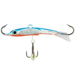 Приманка имеет один, но очень острый и надежный крючок-тройник и допускает проводку задом наперед, при перестановке крючка. Форма блесны типичная, похожа на плотву.