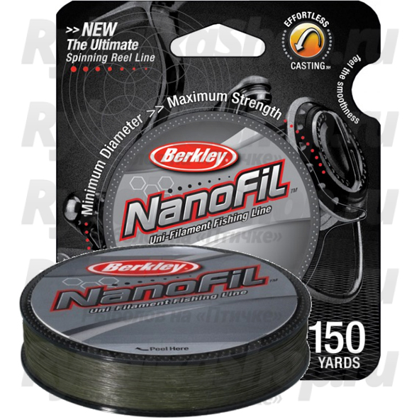 Berkley Nanofil - это уникальное явление на рыболовном рынке – впервые удалось достигнуть высокой прочности и низкой растяжимости при крайне малых диаметрах. Это не совсем классический шнур. Леска состоит из множества тончайших волокон, но они не сплетены с друг-другом, а между ними существуют молекулярные связи. За счет этого леска получила во многом свойства как плетеного шнура, так и монофила. При этом внешне и на ощупь новая леска напоминает обычную прозрачную мононить!