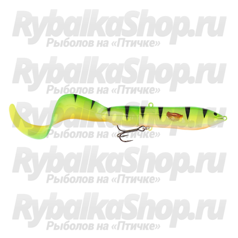 Длинный хвост заставляет приманку соблазнительно покачиваться из стороны в сторону, имитируя великолепные змеино-угриные движения. Когда хвост установлен в положение вниз, приманка немного заглубляется и идет приблизительно на глубине 0,6-1,8 метра. Установите хвост в положение вверх, и появится возможность провести приманку под поверхностью воды, оставляя восхитительный след брызг и волнения водной глади!