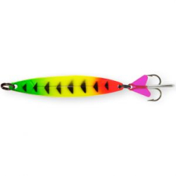 Специальный асимметричный дизайн и смещение центра тяжести к носу позволяет совершать проводку самыми разнообразными способами .Свободное погружение происходит по спиральной траектории, что увеличивает время для возможности атаки. Изменчивые углы отражения ярко блестят, а наряду с шумовым эффектом оперенного тройника и металлического лепестка позволяют пробудить желание и привлечь внимание хищника с большого расстояния. Нравится как жереху , так и судаку, самая результативная проводка – ступенька в районе дна.