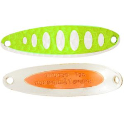 Совершенно новый дизайн с характерной двухсторонней кривизной и чередой ярких пятен . Обтекаемая форма блесны делает ее очень устойчивой при проводке . Плоская утолщенная форма, небольшой объем и большой вес позволяют совершать дальние броски. Выпуклая отражающая поверхность хорошо привлекает внимание в солнечную погоду.
