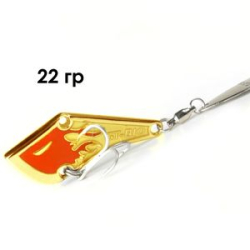 Приманка была создана как развитие популярной блесны KING KONG .Был установлен лепесток в виде ивового листа , а цент тяжести сдвинут к голове. Использование флюоресцирующего покрытия позволило применять блесну не зависимо от глубины и условий видимости ,и кроме того яркая картина пламени выглядит очень агрессивно и не остается без внимания .Хищник реагирует мгновенно. Благодаря наличию лепестка на хвосте , блесна колеблется независимо от скорости проводки.