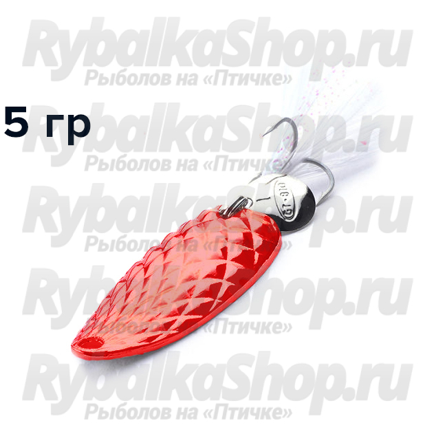 Опытным путём проверено, что оперение с включением переливающихся нитей привлекает даже не хищную рыбу и заставляет преследовать приманку, не говоря уже о хищниках. В любом случае такое оформление значительно больше привлекает рыбу, чем обычный тройной крючок. Дополнительно укомплектована лепестком в хвостовой части для увеличения привлекательности, количества отблесков и бонусной вибрации. Идеально сбалансирована, что позволяет делать дальние и точные забросы.