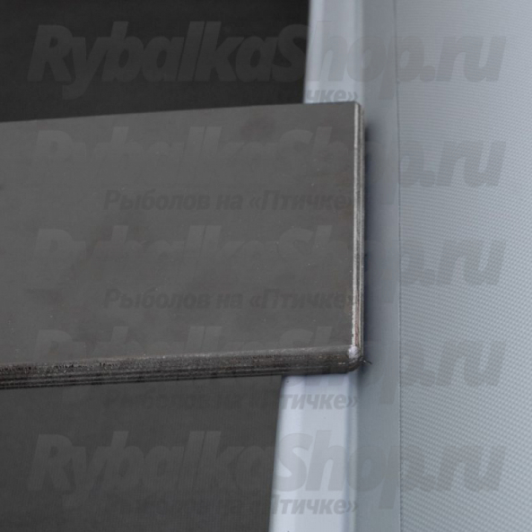 Имеет стационарный транец из водостойкой фанеры, жестко приклеенный к баллонам.