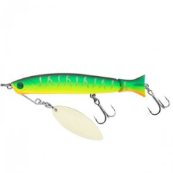 Ayro Spin от фирмы Sprut - очень необычная и весьма уловистая приманка. Она обладает формой тела составного минноу и, подобно спиннербейту, оснащена лепестком на проволочной раме. Приманка не имеет лопасти. Хвостовая часть приманки имеет шарнирное соединение с телом и создает во время проводки соблазнительные низкочастотные движения.