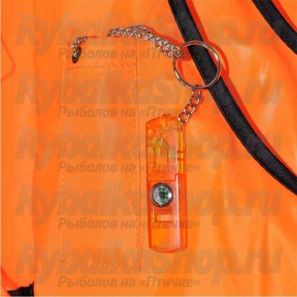 В комплекте к жилету поставляется специальный свисток- фонарик с компасом, который надежно закреплен на груди и имеет специальный кармашек. С помошью свистка и фонарика можно подавать свето звуковые сигналы в экстренной ситуации.