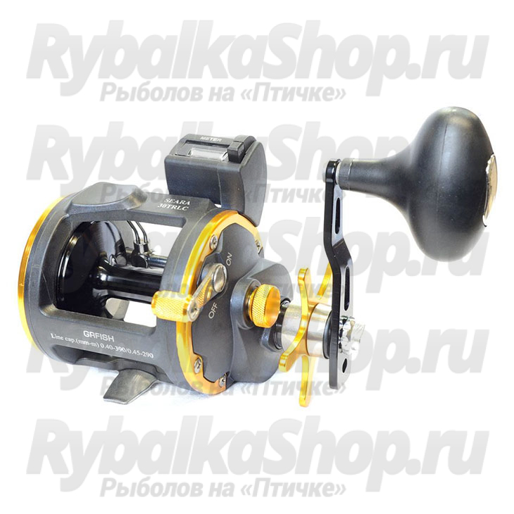 Силовая катушка с счетчиком лески, прекрасно подходит для ловли троллингом или для ловли в море крупных рыб таких как треска, палтус, камбала. Все внутренние элементы катушки выполнены из метала, так что со всеми нагрузками она отлично справляется. Счетчик лески Вам точно поможет определить глубину или дистанцию поклевки.