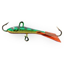 За счет вытянутой формы с изгибом слегка напоминает банан. При погружении совершает высокочастотные колебания с малой амплитудой. В водоемах Европы зарекомендовала себя как лучшая окуневая блесна для зимнего блеснения.