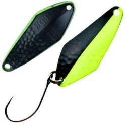 За счет вытянутой формы с изгибом слегка напоминает банан. При погружении совершает высокочастотные колебания с малой амплитудой. В водоемах Европы зарекомендовала себя как лучшая окуневая блесна для зимнего блеснения.