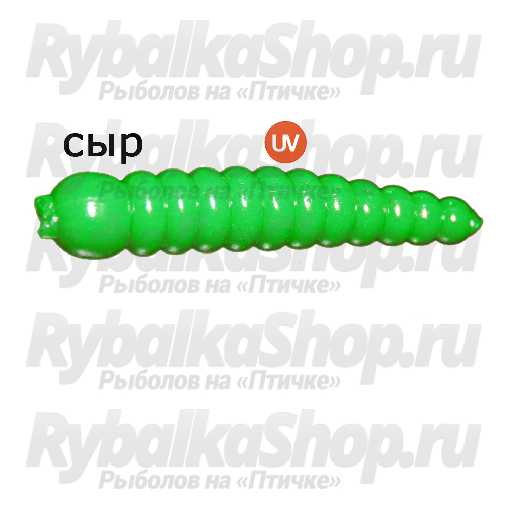 Мягкая приманка MicroFishing Личинка 3.5 см - 10шт. Зеленый (Ультрафиолет) Сыр