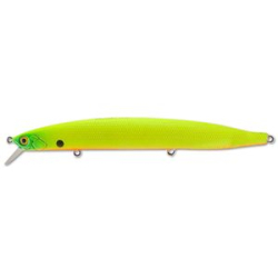 GERA 130SP от TsuYoki обладает собственной игрой, но для активного поиска хищника метод-твичинг,все же предпочтительней. На агрессивном, твичинге с отдачей шнура GERA 130SP показывает пресловутую «елочку» с ленивым «роллингом», уходя в сторону на 2-3 корпуса и заглубляясь при этом на 1.0-1.2 метра в зависимости от толщины шнура. Причем, характер игры не меняется от длинны дистанции, надо только помнить, что на дальнем расстоянии воблером надо работать более размашистыми движениями удилища. Область применения данной приманки весьма широка, это и ловля с берега и ловля на большой водной акватории, везде, где нужен дальний и, что немало важно, точный заброс. Основные трофеи данной модели это не только щука и окунь, а также и жерех, причем не только » котловой», но и матерый,осторожный одиночка. Воблер оснащен крючками VMC, силовыми кольцами, изготовлен из прочного пластика. Имеет прочное ЛКП.