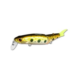 Особенности дизайна: GOT 90F имеет очень подвижное двухсоставное тело с силиконовым хвостиком. Поверхность воблера выполнена в виде ромбовидных насечек, имитирующих чешую. Головная часть приманки исполнена в виде рельефных жаберных крышек с реалистичными 3D глазами. Общее качество исполнения приманки , включая ЛКП, на высоком уроне. Оснащение GOT 90F двумя тройниками VMC Black Nikel соответствующего размера придает воблеру законченный и солидный внешний вид. Запасной силиконовый хвостик входит в комплект поставки!