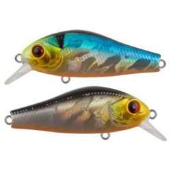 Особенности дизайна: В оформлении поверхности воблера использованы два варианта фактуры: спина гладкая, верхняя часть боков выполнена насечками в виде чешуек, а ниже боковой линии – в виде косых насечек. Головная часть – имитация головы настоящей рыбки, с жаберными крышками и очень крупными вытянутыми 3D глазами. Общий стиль приманки весьма реалистичный. Воблер вооружен двумя тройниками OWNER и силовыми заводными кольцами. Имеется система баланса и магнитная система дальнего заброса. ЛКП соответствует лучшим образцам современного воблеростроения.