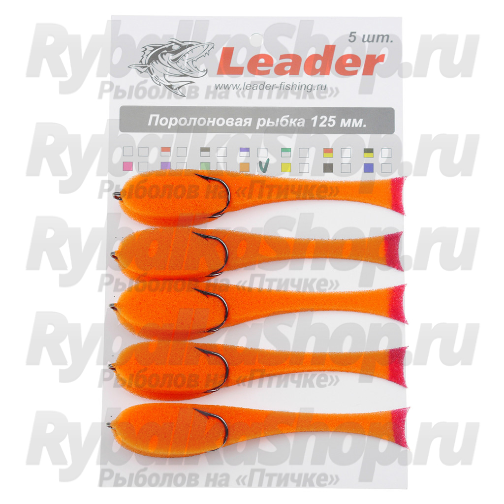 Поролоновые рыбки "Leader" производятся методом вырезания. Используется высококачественный поролон оптимальной плотности, благодаря чему рыбка относительно устойчива к механическим повреждениям наносимыми рыбой и при этом сохраняет игру свойственную только резанным, а не «плавленым» поролоновым приманкам.