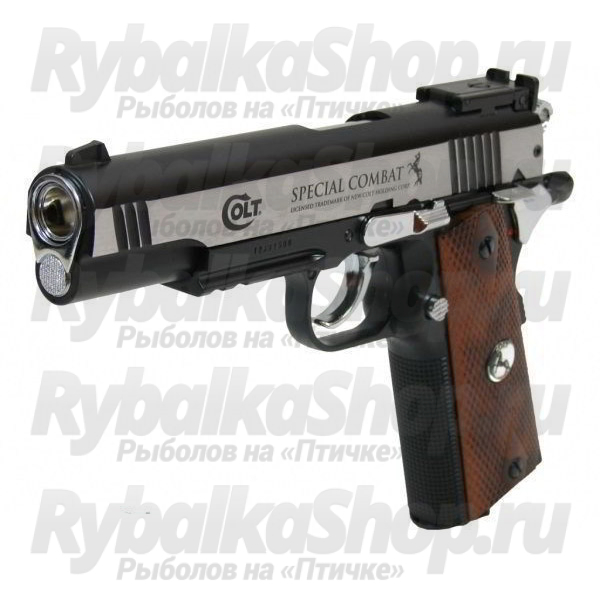 Пистолет пневматический Colt Special Combat (никель с пласт. накладками под дерево)
