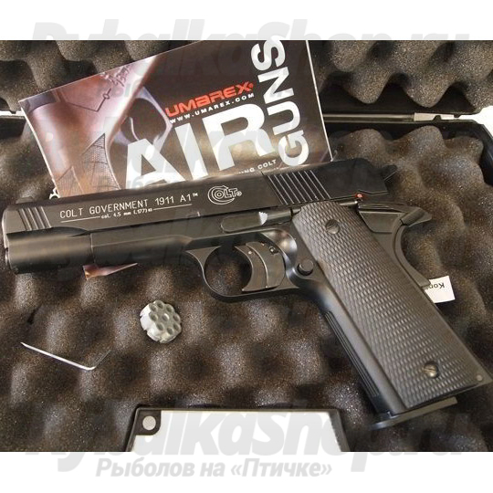 Пневматическая модель пистолета Umarex Colt Government 1911 A1 выпущена в Германии, это лицензионная копия всемирно легендарного Colt Government Model 1911A1, пришедшего на смену Colt М1911 и выпускавшегося с 1924. Colt М1911A1 был стандартным пистолетом армии США до 1985, затем на смену пришла Beretta M-92FS.