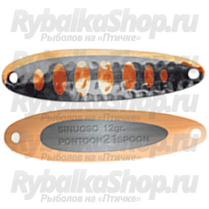 Pontoon21 Sinuoso Spoon - узкотелые колеблющиеся блесна с изогнутым профилем в хвостовой части с двусторонним рисунком и рифленой поверхностью. Внешняя сторона приманки, выполненная в виде рельефной поверхности с нанесенным на нее рисунком, способствует дополнительному привлечению хищника.