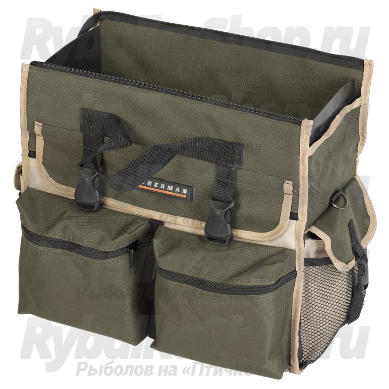Fisherman Ф-08С - замечательная сумка-кофр, 5 разных внешних кармана и 2 кармана из сетки позволяют разместить множество разнообразных нужных мелочей. Конструкция позволяет жестко зафиксировать сумку в открытом состоянии. Сумка удобна и многофункциональная, может пригодиться не только на рыбалке.