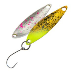 Mukai Looper - линейка колеблющихся блесен небольшого размера, предназначенных для ловли форели. Кроме форели на данные приманки отлично ловятся голавль, язь, окунь и жерех. Блесны оснащены качественными одинарными безбородыми крючками. Приманка обладает активной игрой при любых вариантов проводки. Широкая гамма цветов позволит подобрать оптимальный вариант для различных условий ловли. Вес блесны - 2.4 грамма.