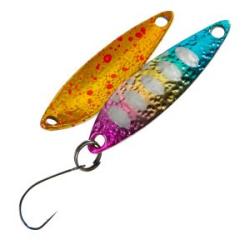 Mukai Looper Standart - линейка колеблющихся блесен небольшого размера, предназначенных для ловли форели. Кроме форели на данные приманки отлично ловятся голавль, язь, окунь и жерех. Блесны оснащены качественными одинарными безбородыми крючками. Приманка обладает активной игрой при любых вариантах проводки. Широкая гамма цветов позволит подобрать оптимальный вариант для различных условий ловли. Вес блесны - 3.2 грамма.