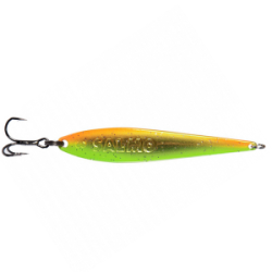 WITCH 118SP – двухсоставной воблер, в хвостовой части которого имеется мягкий силиконовый хвостик. Поверхность воблера выполнена в виде ромбовидных (в верхней части) и косых (вниз от боковой линии приманки) насечек, имитирующих чешую. Головная часть воблера исполнена в виде рельефных жаберных крышек с вклеенными реалистичными 3D глазами. Воблер WITCH 118SP узкий и прогонистый, лопасть. крупная, и имеет крутой угол атаки. Имеется система баланса, шары которой при анимации создают шумовое сопровождение. Оснащен WITCH 118SP тремя тройниками Cultiva Owner соответствующего размера, надежной фурнитурой и заводными кольцами . Общее качество исполнения приманки , включая ЛКП, на высоком уроне.