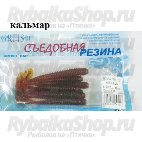 Съедобная резина Grfish Moving Effect 3.5" 89mm, аттрактант кальмар, уп.8штук, цвет #34