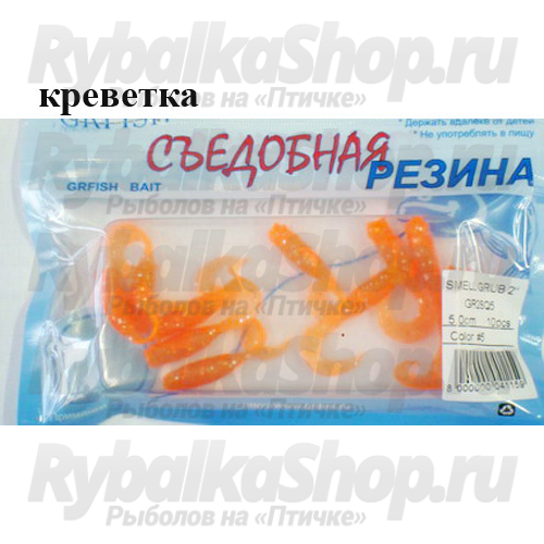 Съедобная резина Grfish Smell Grub 2" 50mm, аттрактант креветка, уп.10 штук, цвет #5