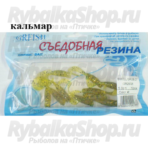 Съедобная резина Grfish Smell Grub 4" 100mm, аттрактант кальмар, уп.8 штук, цвет #6