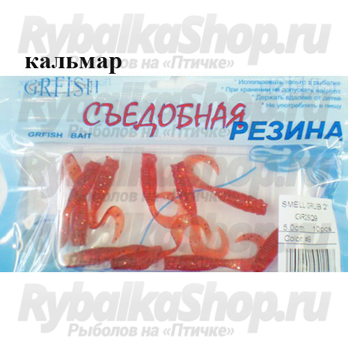 Съедобная резина Grfish Smell Grub 4" 100mm, аттрактант кальмар, уп.8 штук, цвет #9