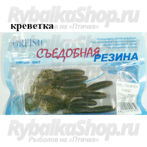 Grfish Smell Twister - классический твистер, производится на том же заводе, что и приманки Reins. Имеет два различных аттрактанта: кальмар и креветка. Богатая цветовая гамма, размерный ряд, невысокая цена и популярные современные формы делают съедобную резину GRFISH отличным выбором для любителей джига.