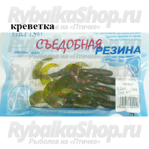 Съедобная резина Grfish Smell Twister 60mm, аттрактант креветка, уп.10 штук, цвет #17