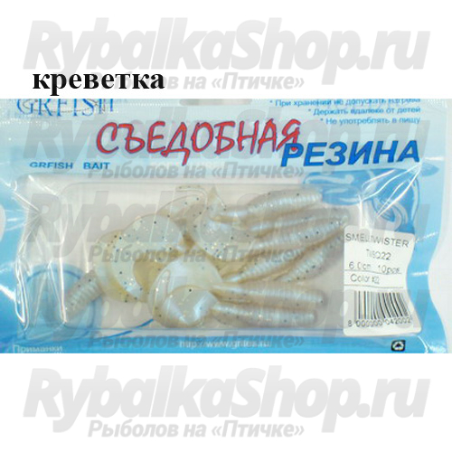 Grfish Smell Twister - классический твистер, производится на том же заводе, что и приманки Reins. Имеет два различных аттрактанта: кальмар и креветка. Богатая цветовая гамма, размерный ряд, невысокая цена и популярные современные формы делают съедобную резину GRFISH отличным выбором для любителей джига.