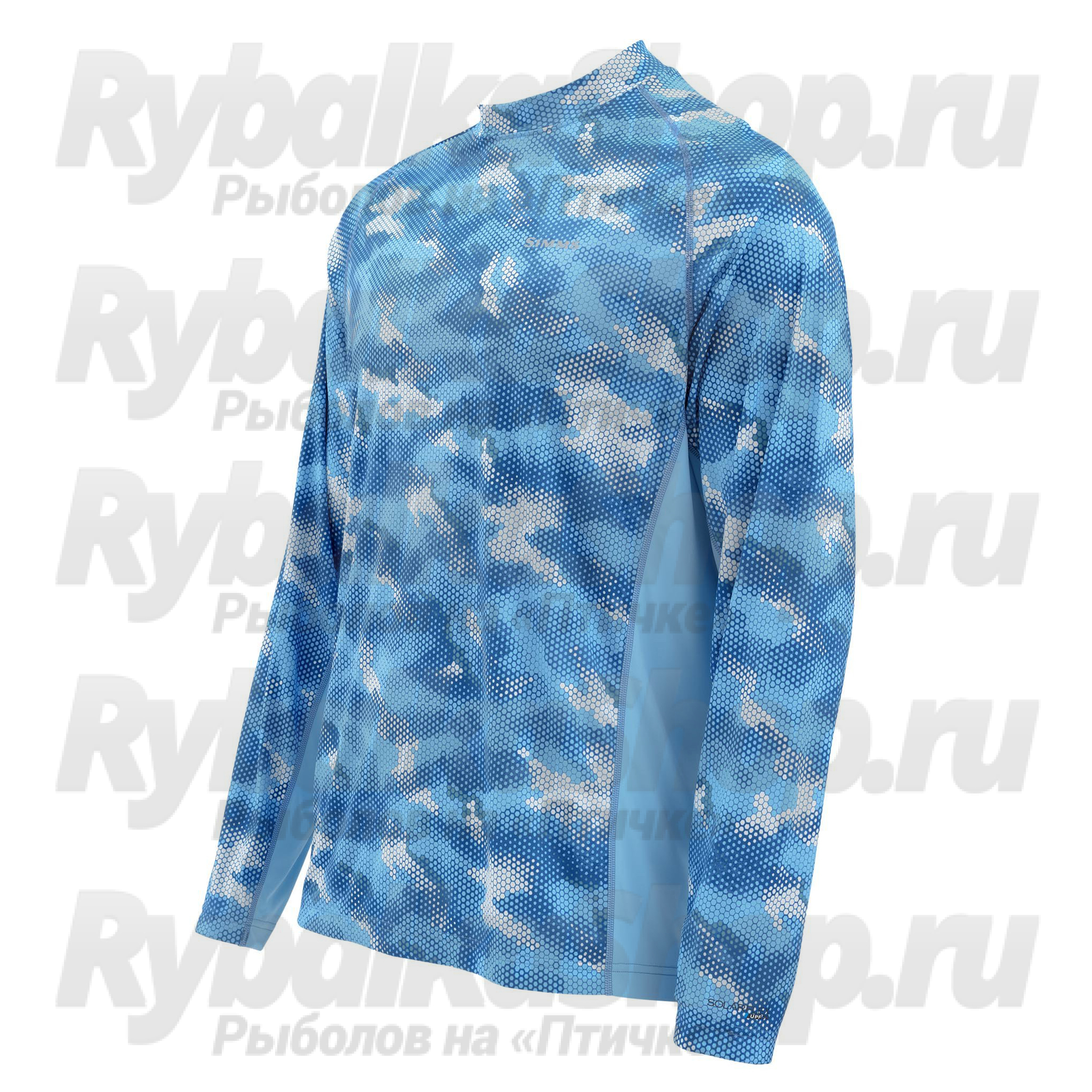 Описание Simms Solarflex LS Crewneck Print Hex Camo Sky Blue