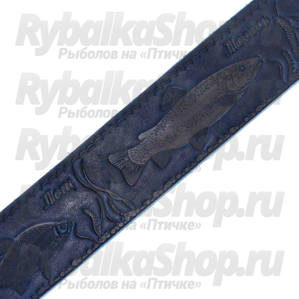 Ремень рыбака. Синий (рисунок тиснения Рыбы России, длина 130 см, ширина 4 см)