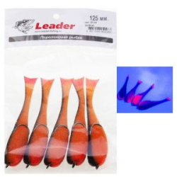 Рыбка поролоновая Leader оснащенная на двойнике 125 мм. Цвет 24 UV упак. 5 шт.