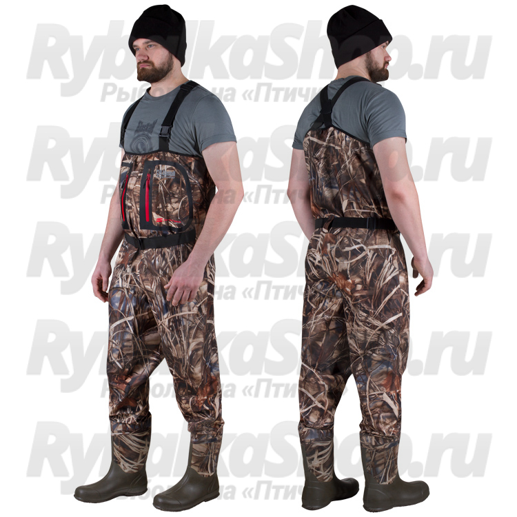 • Слитные вейдерсы с неопреновыми укороченными сапогами;