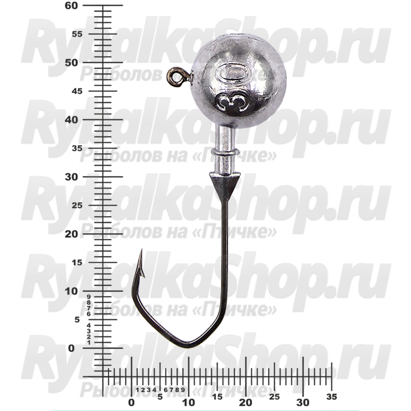 Форма головки – шар, это лучший вариант как для работы приманки, так и для результативности всей ловли, который идеально подходит под все типы силиконовых приманок. Для литья джиг-головки использован крючок №3/0, вес свинцовой части - от 4 до 26 грамм.