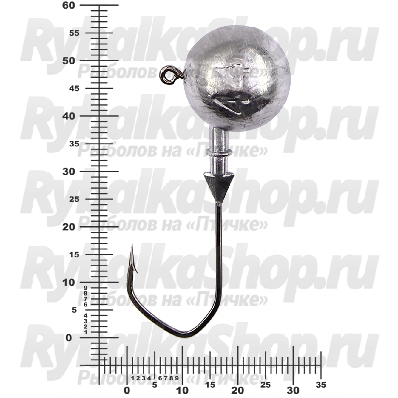 Форма головки – шар, это лучший вариант как для работы приманки, так и для результативности всей ловли, который идеально подходит под все типы силиконовых приманок. Для литья джиг-головки использован крючок №3/0, вес свинцовой части - от 4 до 26 грамм.