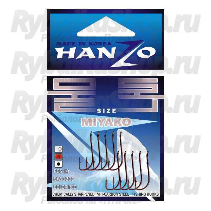 Hanzo Miyako RED - универсальные тонкие крючки, рассчитанные на использование растительных и животных насадок. Надежность и острота крючков достигается благодаря современному тех. процессу и вниманию к деталям. Широкий размерный ряд позволяет подобрать оптимальный вариант под любые условия ловли.