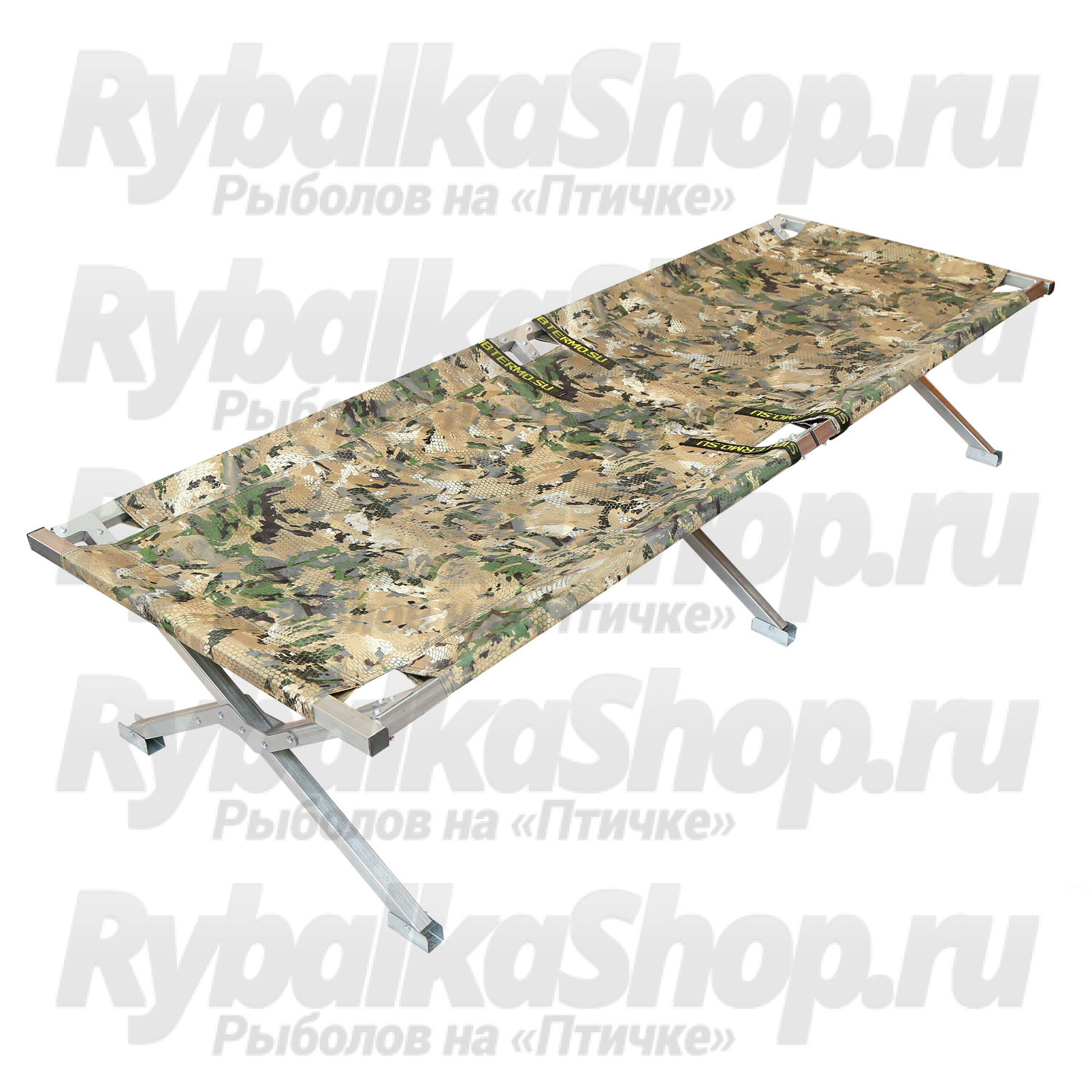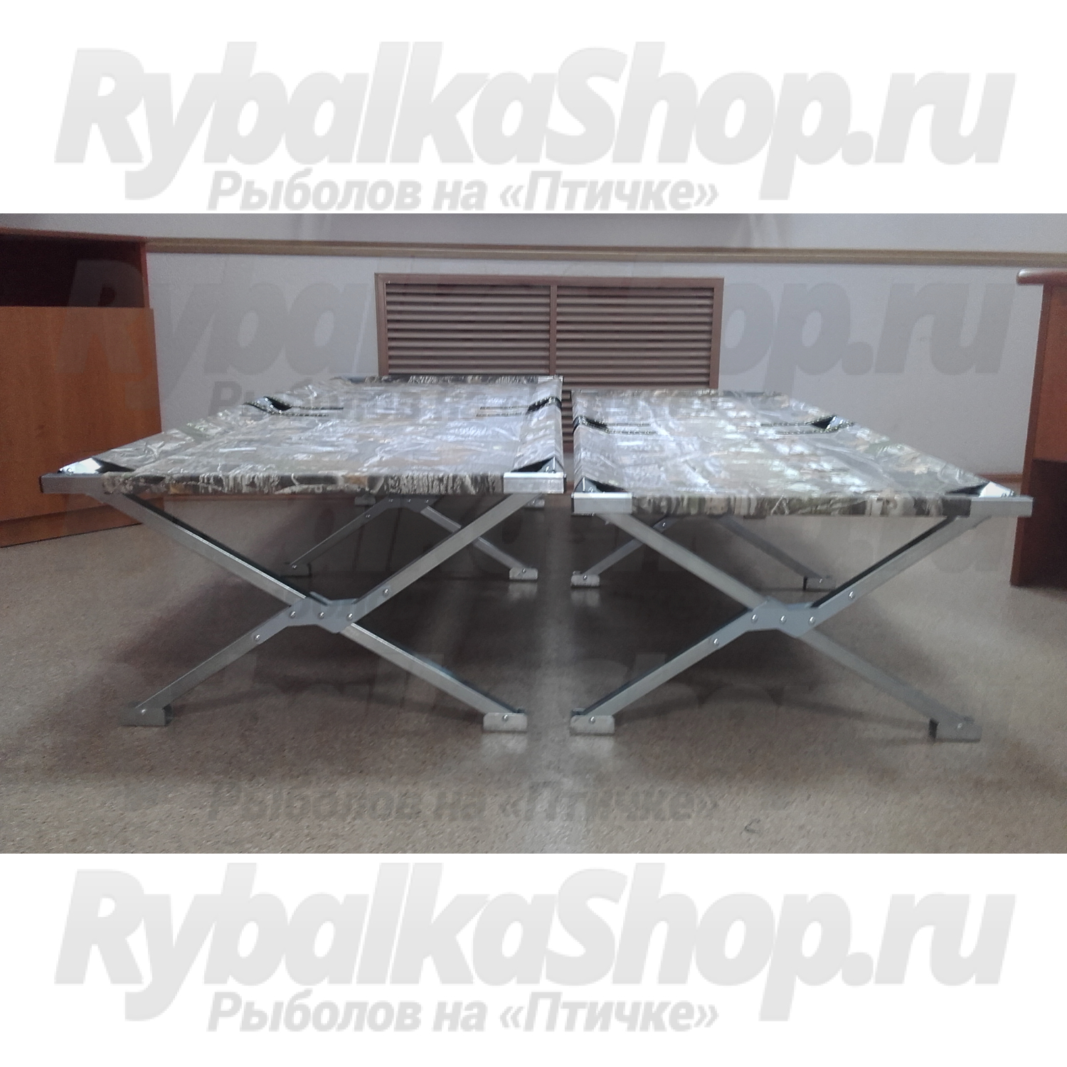 Раскладушка складная в чехле (стандарт) Сибтермо, основа которой изготовлена из стальных оцинкованных электросварных труб квадратного профиля. Главное преимущество раскладушки - дополнительные опоры на ножках, которые не продавливают и не рвут утепленный пол в палатке для зимней рыбалки и не проваливаются в грунт/песок при эксплуатации раскладушки летом.
