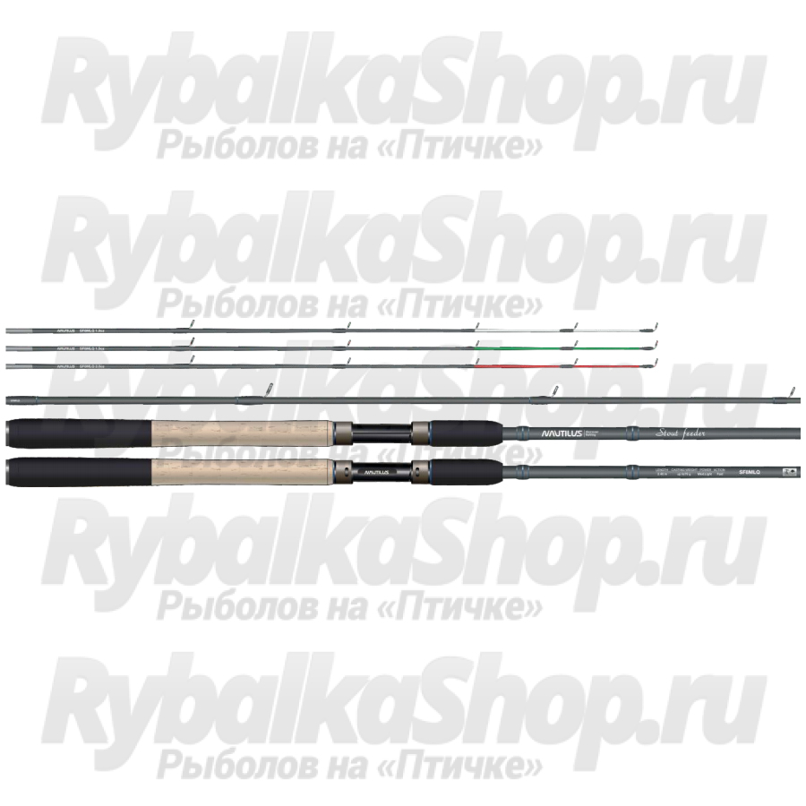 Nautilus Stout Feeder - серия коротких фидерных удилищ для ловли с лодки и на прудах. За счет своей небольшой длины обладают определёнными преимуществами перед классическими бланками – их удобно использовать при ловле с лодки, а также с берега в условиях ограниченного пространства. Широкий тестовый диапазон позволяет подобрать необходимое удилище под конкретные условия (ловля на течении или в стоячем водоеме) или под определенный вид или размер рыбы.
